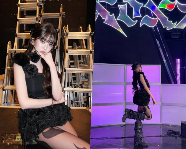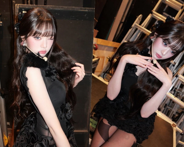 무대 뒤 대기실에서는 카리스마 넘치는 눈빛과 포즈로 시선을 압도했고, 무대 위에서는 긴 웨이브 헤어와 당당한 실루엣으로 몽환적인 분위기를 자아냈다. 블랙 드레스에 어우러진 화려한 조명은 장원영만의 신비로운 매력을 더욱 돋보이게 했다.