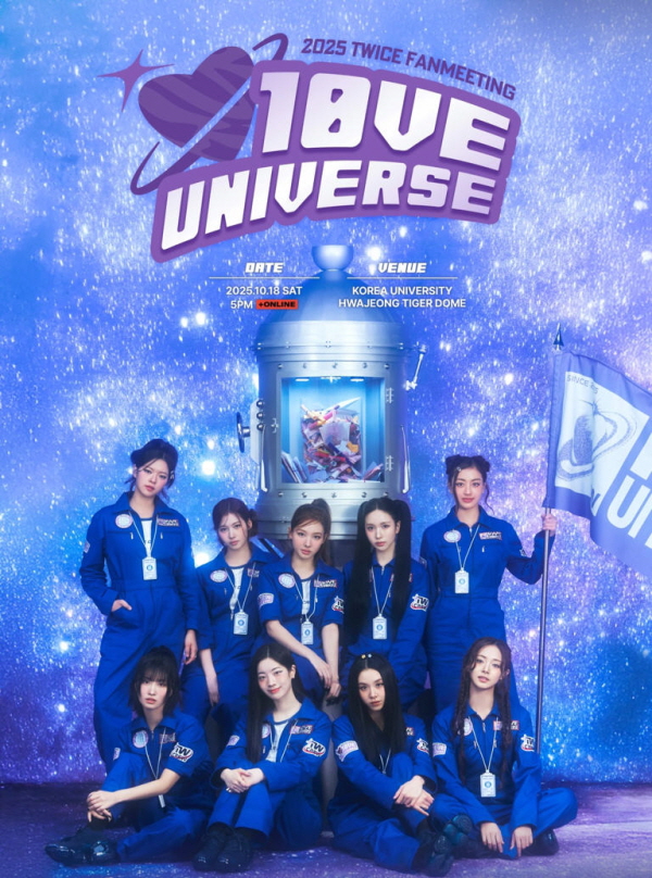 JYP엔터테인먼트는 트와이스가 2025 팬미팅 ‘러브 유니버스(10VE UNIVERSE)’를 연다고 22일 밝혔다. 이에 따르면 트와이스는 10월 18일 오후 5시 서울 성북구 고려대학교 화정체육관에서 팬미팅을 열고 팬들과 만난다. 공개된 포스터 속 아홉 멤버는 우주 비행사 콘셉트의 비주얼을 선보였다.