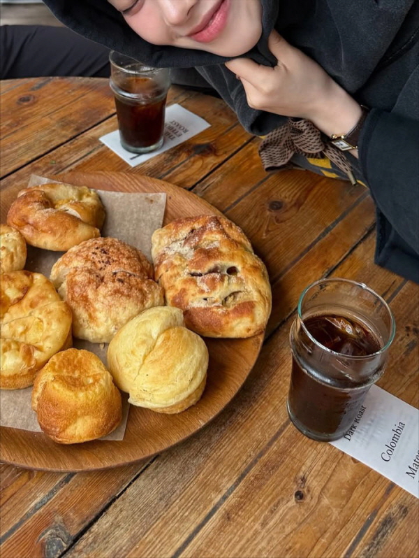공개된 사진 속 카리나는 어두운 컬러의 오버핏 후드티를 입고 카페에서 여유로운 시간을 보내고 있다.