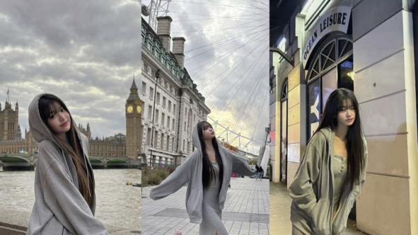 특히 내추럴한 생머리와 자연스러운 포즈, 은은한 미소가 런던 특유의 흐린 하늘과 어우러지며 감성 화보 같은 장면을 완성했다.