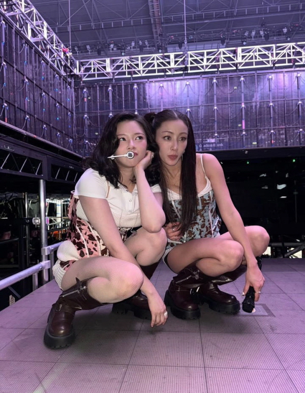 같은 멤버 지효과 함께한 투 샷에서는 장난기 섞인 포즈로 무대 밖의 유쾌한 에너지도 드러냈다.