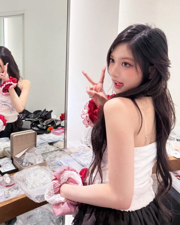 공개된 사진 속 이서는 러블리한 하트 초커와 리본 포인트 메이크업으로 사랑스러운 매력을 드러냈다. 다른 사진에서는 연핑크 재킷을 입은 채 메이크업을 받으며 초근접샷에서도 완벽한 이목구비를 자랑했다.