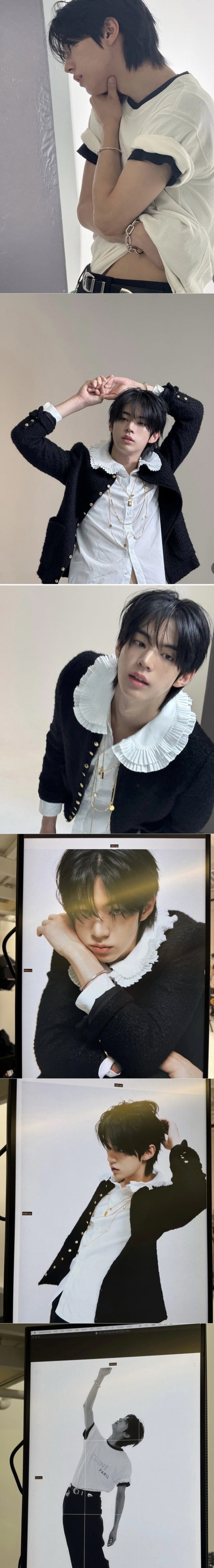 그룹 투어스(TWS) 멤버 도훈은 11월 22일 투어스 공식 계정에 음표 이모티콘과 함께 여러 장의 화보 비하인드 사진을 게시했다.