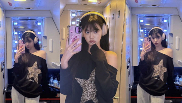 공개된 사진 속 장원영은 비행기 내부에서 헤드폰을 착용한 채 셀카를 남기며 사랑스러운 매력을 뽐냈다.