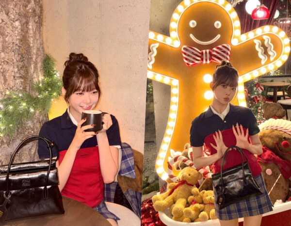 지난 10일 르세라핌 홍은채는 자신의 인스타그램에 "miumiu holiday"라는 글과 함께 해당 브랜드 착장을 입고 찍은 사진 여러 장을 업로드했다.