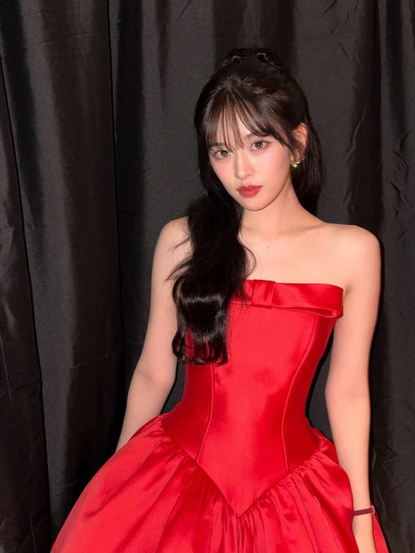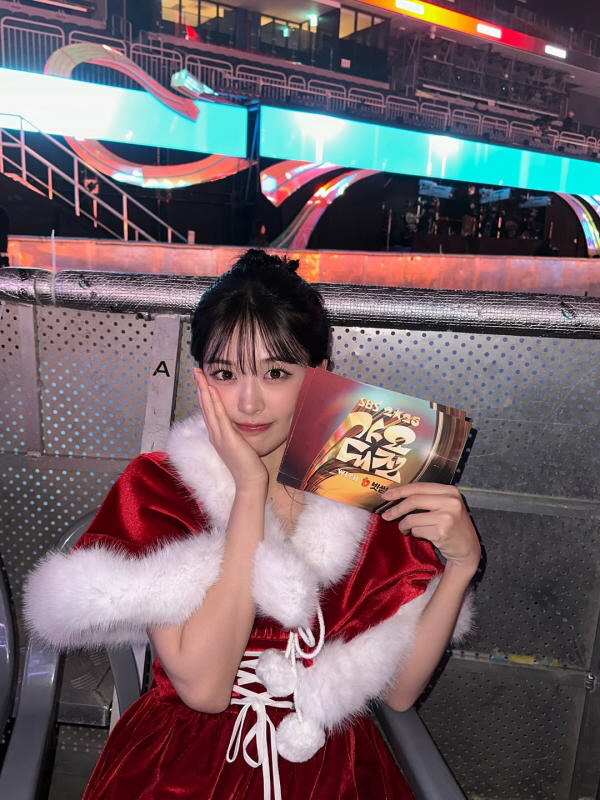 특히 양손으로 볼을 감싸는 포즈, 장난기 가득한 표정, 무대 뒤 대기실에서의 자연스러운 모습까지 더해져 안유진 특유의 사랑스러운 매력이 극대화됐다. 강렬한 레드 컬러 의상과 대비되는 또렷한 이목구비, 귀여운 표정 연기가 어우러지며 ‘불량산타’라는 콘셉트를 유쾌하게 완성했다.