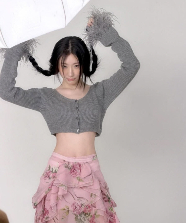 공개된 사진 속 채령은 그레이 색상의 크롭 가디건과 플라워 패턴의 핑크 스커트를 입고 탄탄한 몸매를 뽐냈다. 여기에 양갈래로 땋은 헤어스타일로 ‘섹시 큐티’의 정석을 보여줬다.