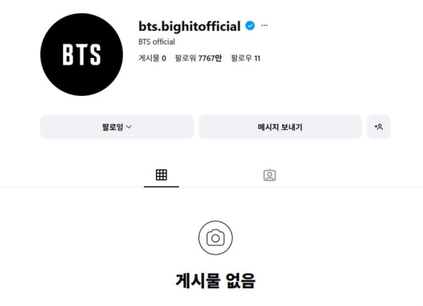 2026년 1월 1일, BTS(방탄소년단)의 공식 SNS 채널에 올라와있던 모든 게시글이 비공개 처리됐다.또한 팬 소통 플랫폼 위버스에서는 단체사진을 지우고, X(구 트위터)도 프로필을 바꿔 눈길을 끈다.