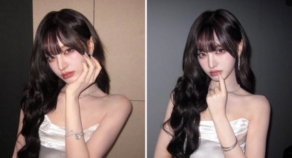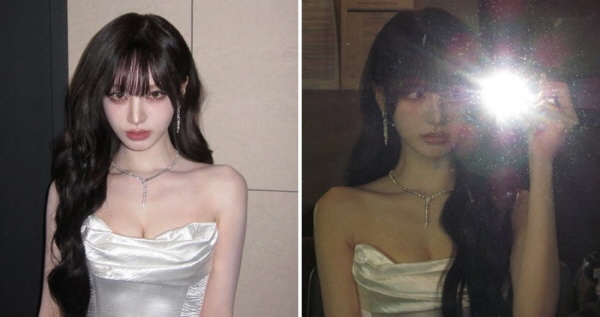 드레스를 통해 드러난 리즈의 우아한 어깨 라인과 섬세한 쇄골은 고급스러우면서도 매혹적인 분위기를 연출했습니다. 대기실과 복도로 추정되는 장소에서 촬영된 사진들에서 리즈는 입술에 손가락을 올리거나 부드러운 미소를 보이는 등 자연스러운 포즈로 성숙한 아름다움을 과시했습니다.