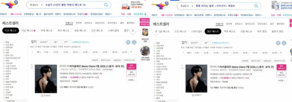 방탄소년단 진 커버 마리끌레르 2월호 잡지 실시간·주간·월간 판매 1위 싹쓸이