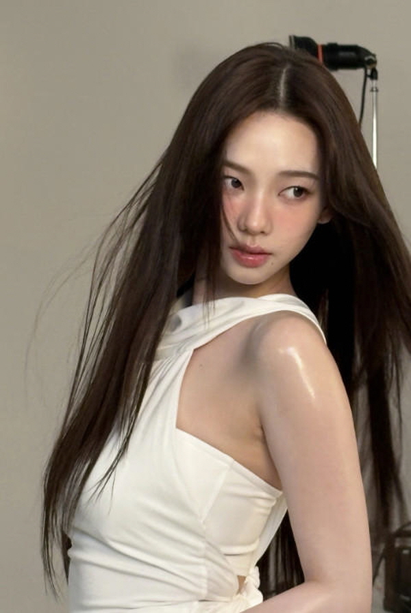사진 속 카리나는 뷰티 화보 촬영에 집중하고 있는 모습. 카리나는 블루 니트 원피스와 화이트 홀터넥 원피스 등 다채로운 의상을 완벽하게 소화했다. 특히 뷰티 제품을 활용해 얼굴과 어깨 라인을 강조한 연출은 카리나 특유의 AI 같은 비주얼을 한층 돋보이게 만들었다.