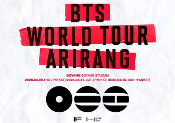23일 방탄소년단 소속사 측은 "오는 4월 9일, 11일, 12일 고양종합운동장 주경기장에서 'BTS WORLD TOUR 'ARIRANG' IN GOYANG'을 개최한다. 지난 22일 진행된 팬클럽 선예매는 3회차 전석 완판됐다"고 밝혔다.
