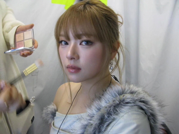 사진 속 정연은 정면을 향해 시선을 두고 메이크업을 받으며 촬영에 임하고 있다. 조명과 배경은 뒷무대나 대기 공간으로 보이는 장소에 마련돼 있어 공연이나 촬영 스케줄 직전의 현장을 짐작하게 한다.