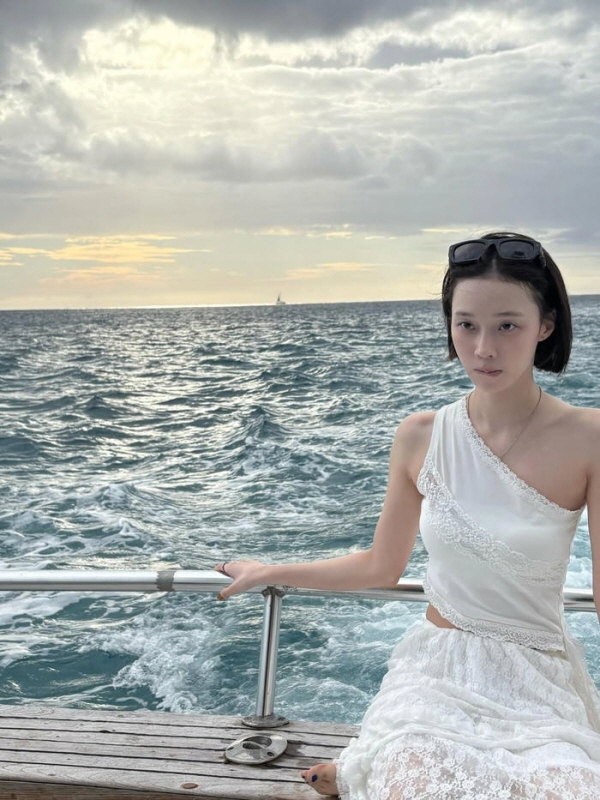 공개된 사진 속 윈터는 보트 위에서 독보적인 분위기를 자아내고 있다. 체크 비키니에 파란색 오버사이즈 셔츠를 매치해 스포티하면서도 매혹적인 바캉스 룩을 완성했으며, 셔츠를 한쪽 어깨 아래로 자연스럽게 내린 스타일링은 가녀린 어깨와 쇄골 라인을 강조하며 우아함을 돋보이게 했다.