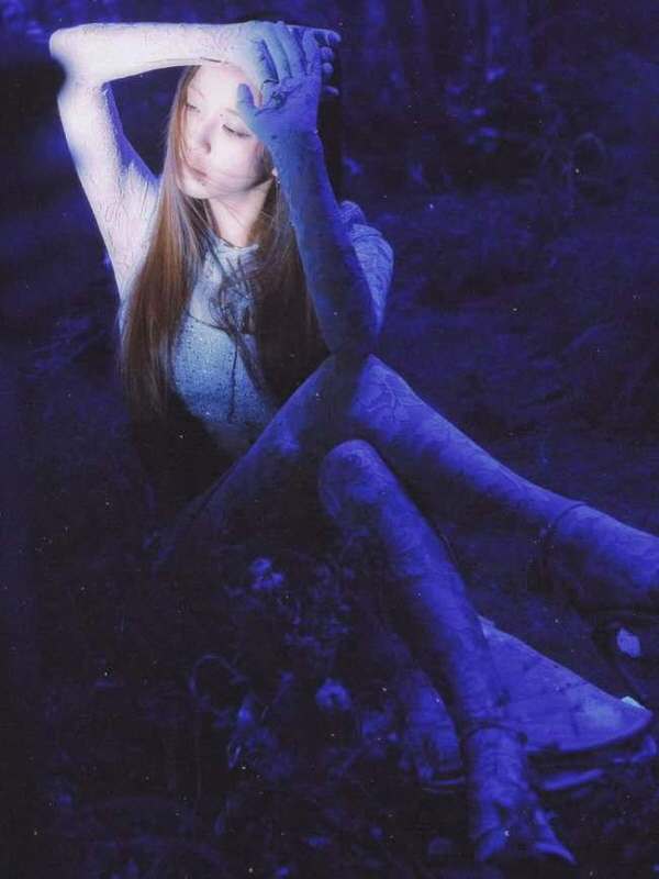 지수는 갈색 머리를 늘어뜨린 모습으로 팔을 하늘 위로 향해 쭉 뻗고 포즈를 취하고 있다. 스포트라이트를 받은 그의 미모가 한층 돋보인다.