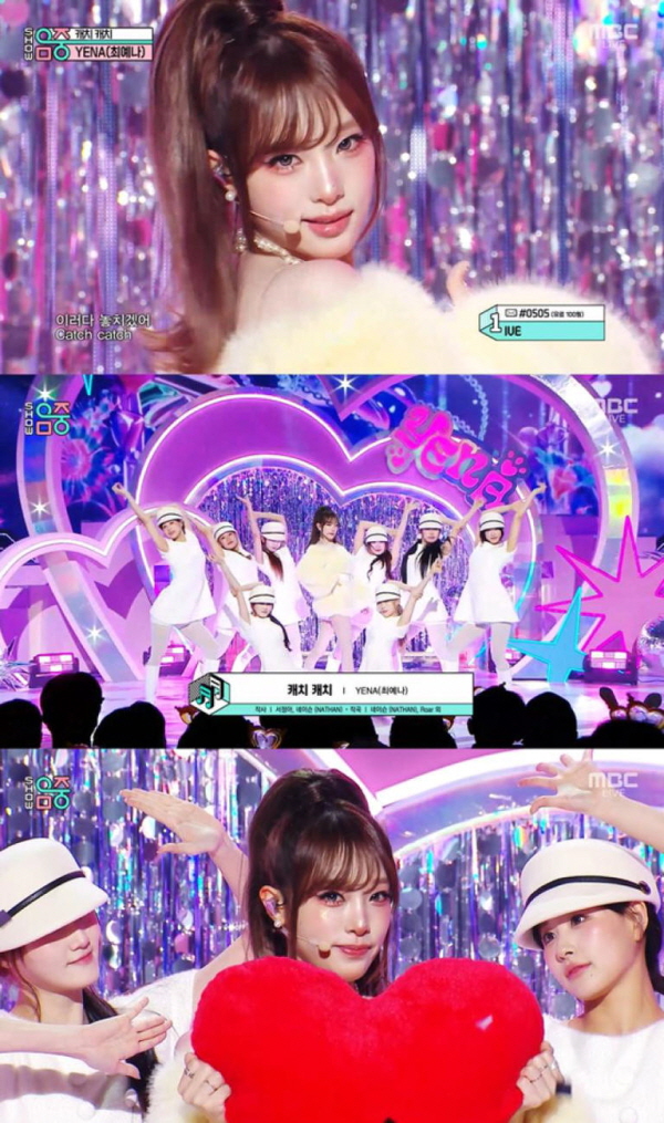 특히 곡 제목인 '캐치 캐치'의 의미 그대로 무언가를 낚아채는 듯한 '캐치' 안무와 '애교 폭격기' 포인트 안무가 강한 중독성을 유발했다. 화려한 무대 비주얼과 무대를 꽉 채우는 최예나의 긍정 에너지가 어우러지며 음악적 시너지를 완성했다.