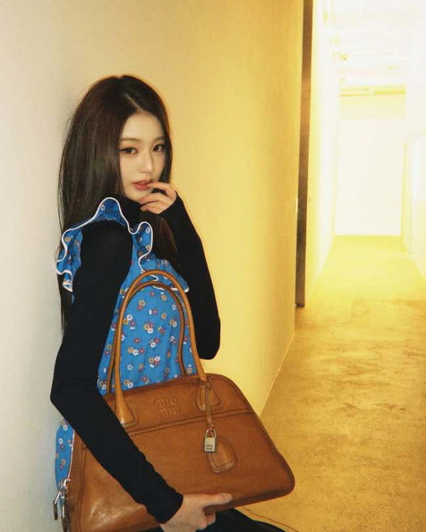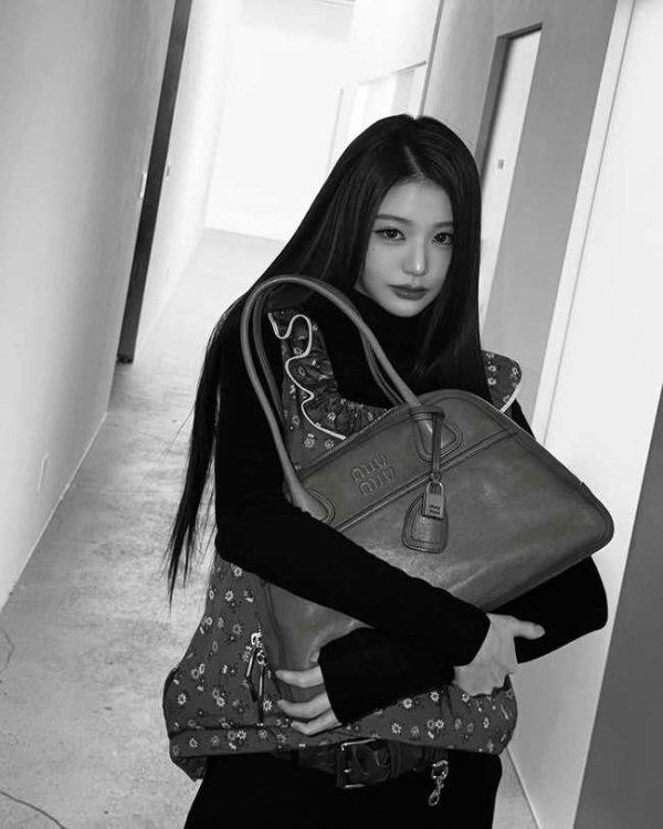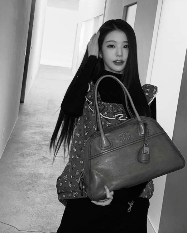 장원영은 앰배서더로 활동 중인 브랜드 미우미우의 가방을 들고 포즈를 취하고 있다. 그는 긴 흑발을 자랑하며 가방을 안고 있다. 이어 벽에 기대어 카메라를 응시하고 있다.