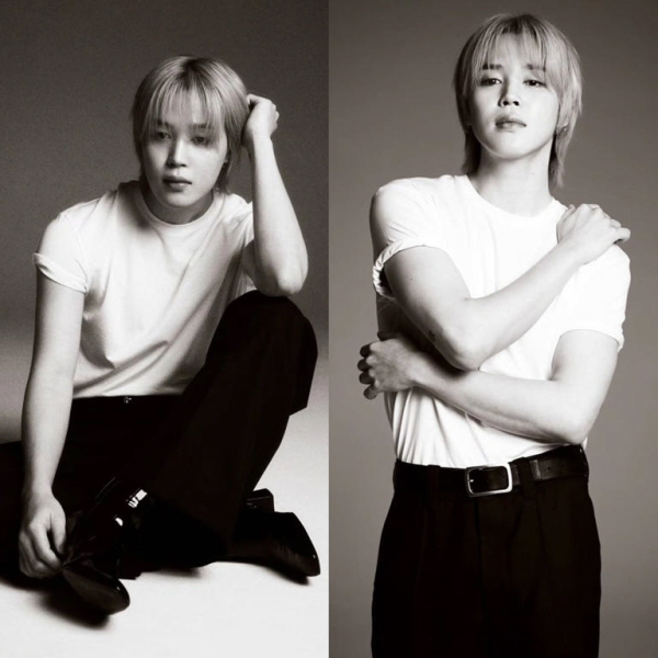 흑백 사진에서는 또 다른 느낌이 살아났다. 흰색 티셔츠와 블랙진 조합으로 꾸민 듯 안 꾸민 듯한 멋을 보여줬고, 절제된 무드가 더해지며 지민 특유의 화보 같은 분위기가 한층 선명해졌다.