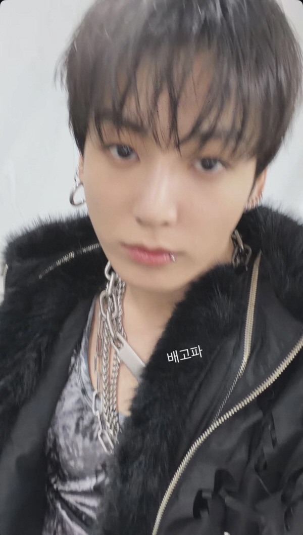 방탄소년단(BTS) 정국은 지난 12일 고양종합운동장 주경기장에서 개최한 방탄소년단 새 월드투어 'BTS 월드투어 아리랑'(BTS WORLD TOUR ARIRANG) 무대 후 개인 인스타그램 스토리를 통해 '배고파'라는 글을 덧붙인 사진을 공개했다.